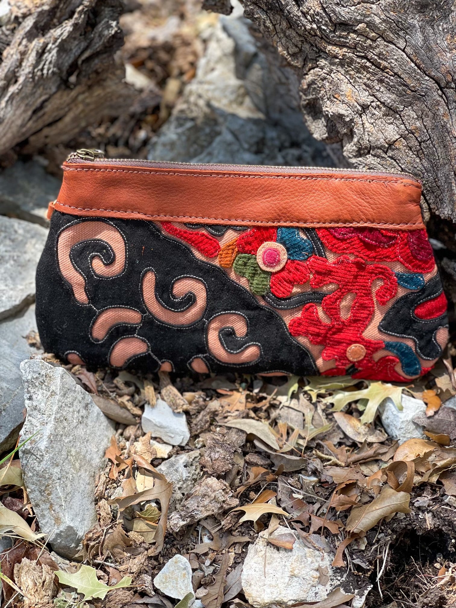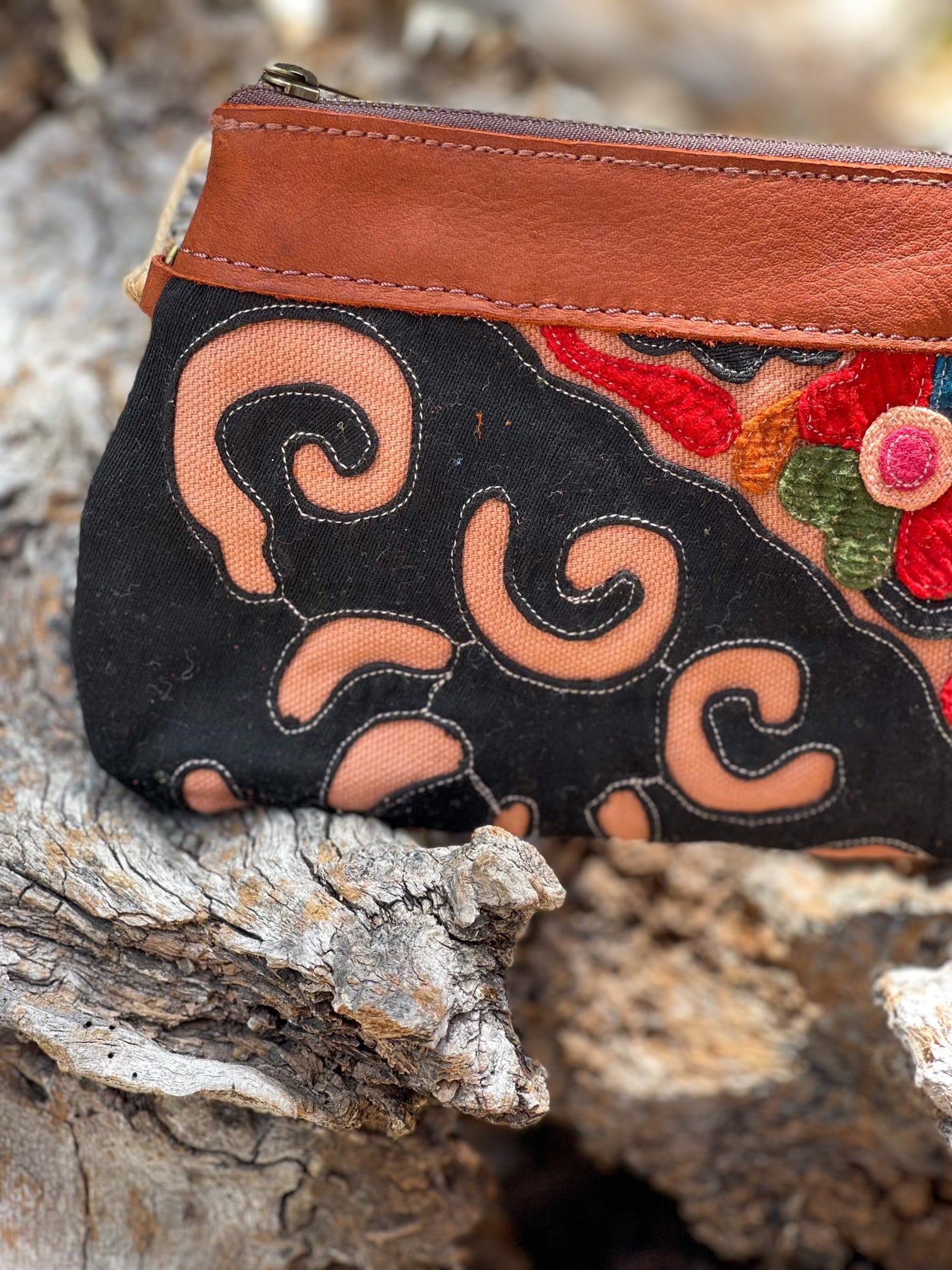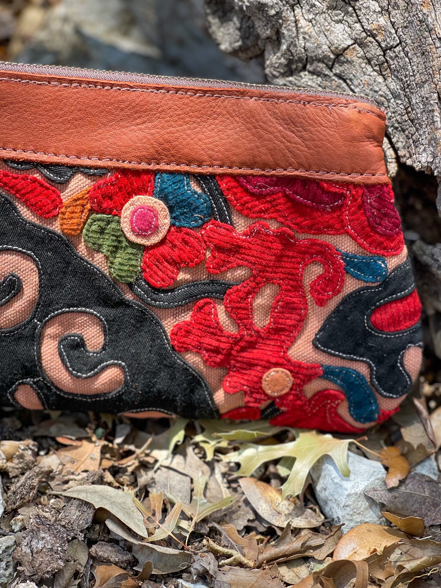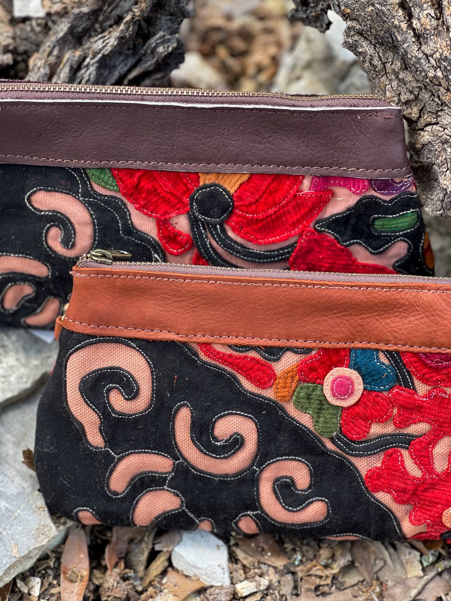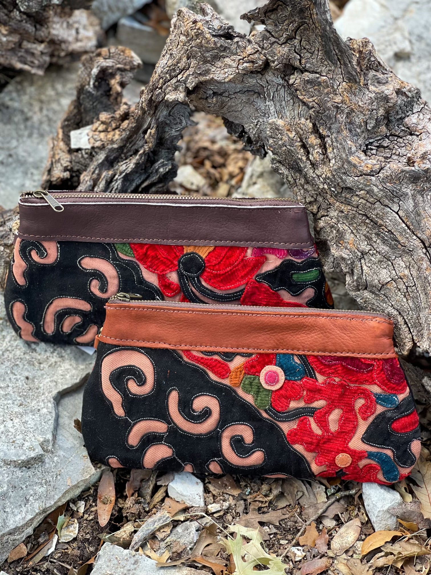 From the Phoenix Collection, here are some beautiful cosmetic bags. Leather and hand-sewn embroidery are crafted together with beautiful decorative stitching.