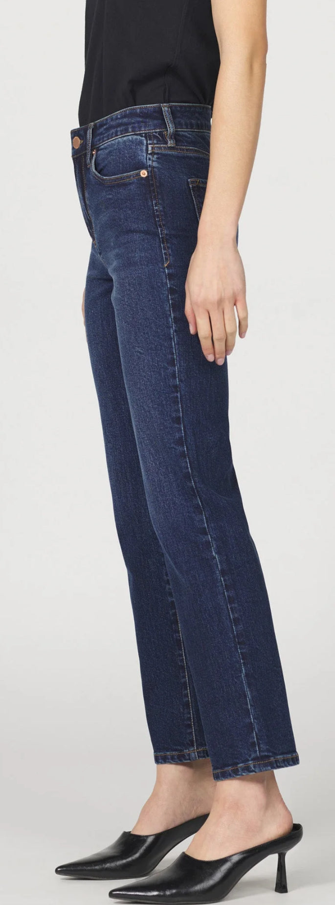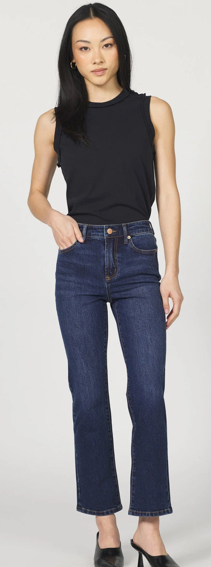 The Anika straight leg jean in Moonlight wash is tailored from a luxurious cotton-spandex blend, promising a perfect stretch for comfortable all-day wear.