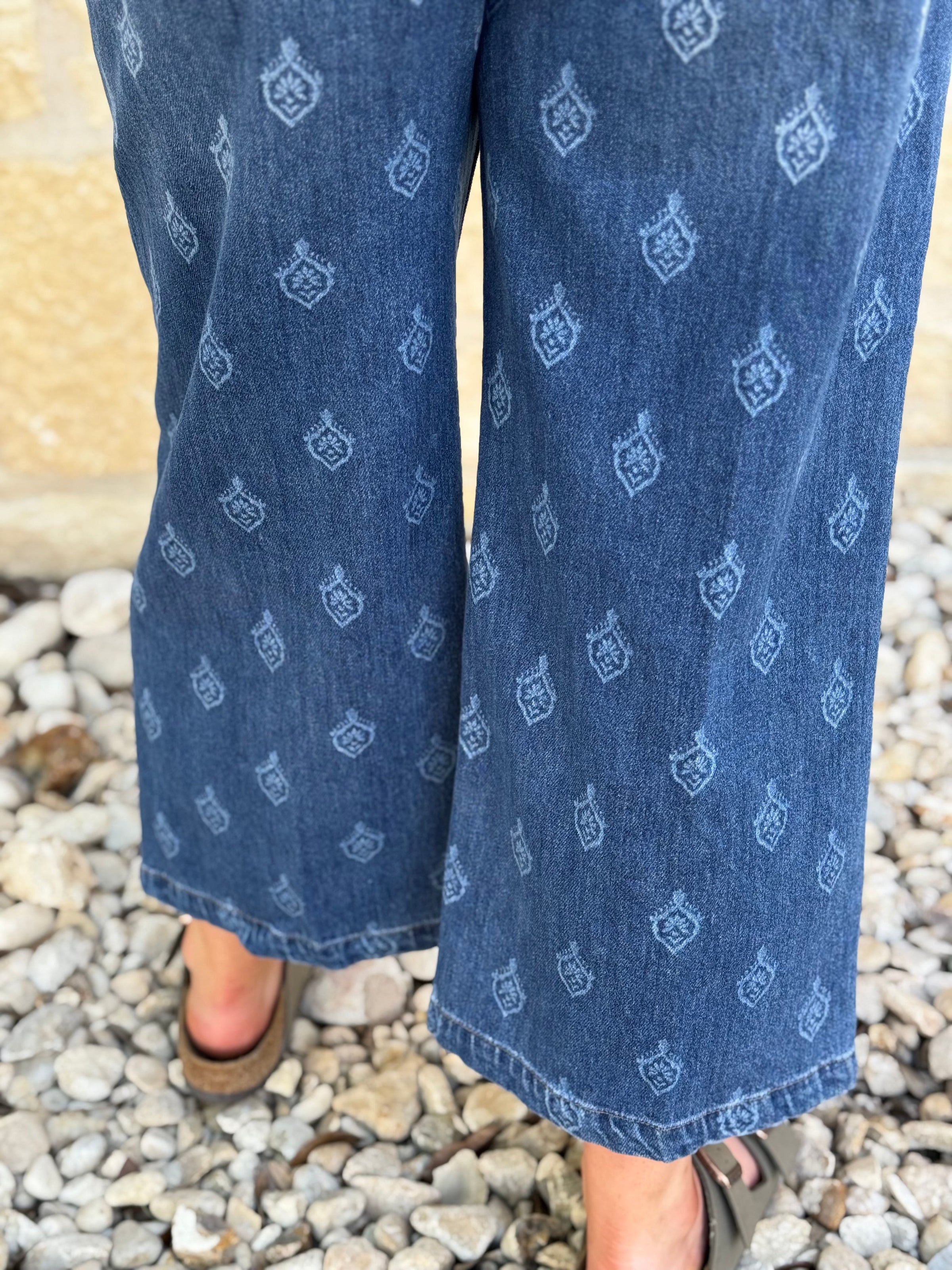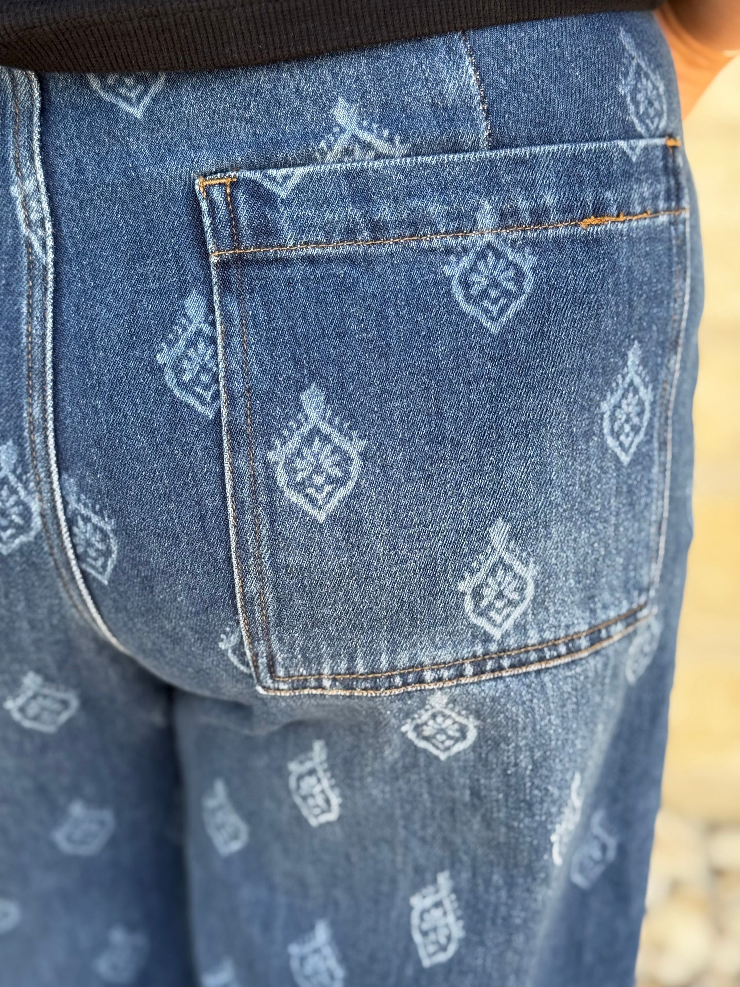 Featuring Audrey high rise clean hem jeans with a contemporary tulip crest design.