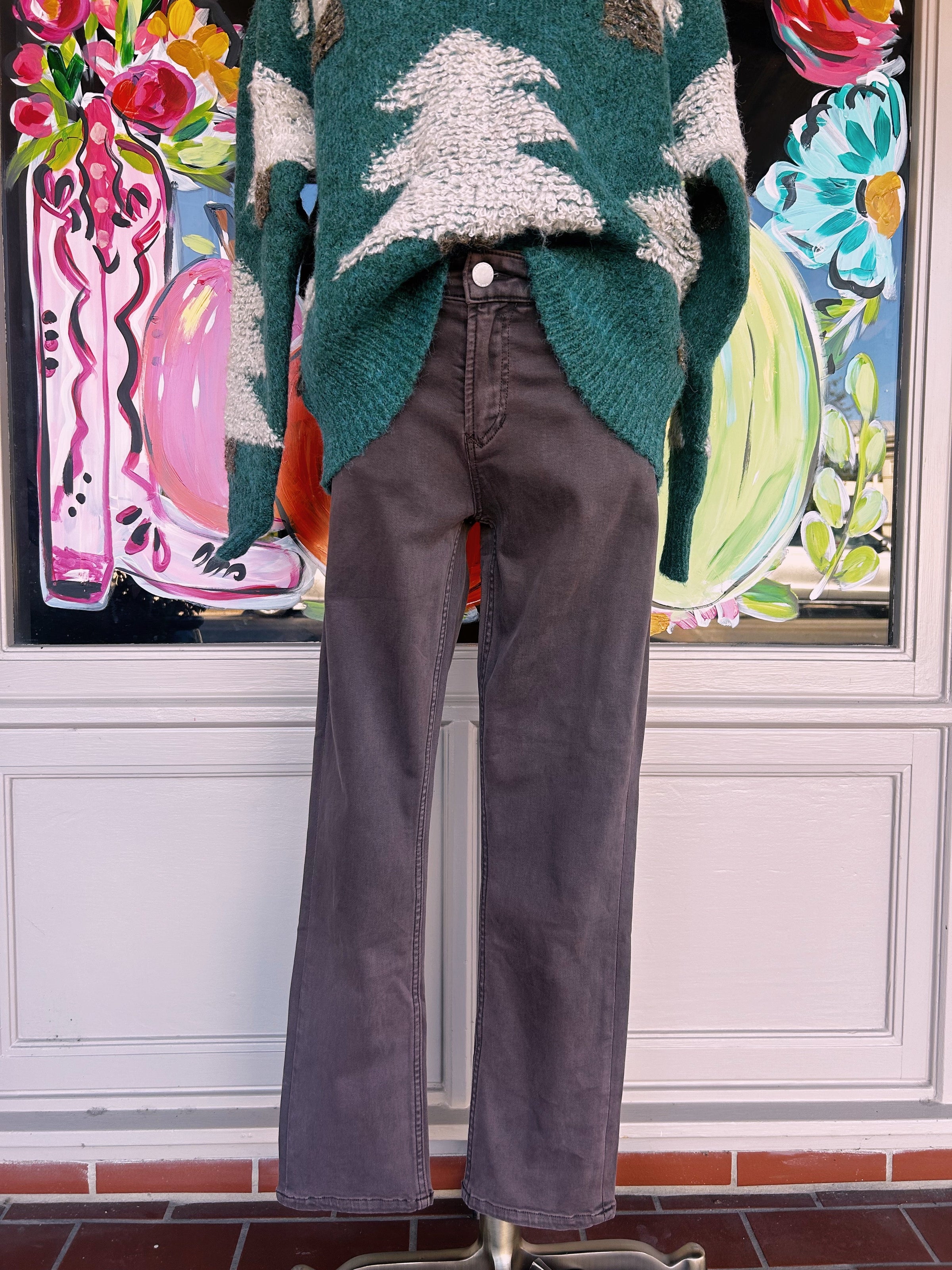 High rise ankle slim straight leg jeans. It's the outstanding fit that sits slightly lower on the waist and fitted slender from the hip to mid thigh. Ankle inseam on stretch in denim designer color palettes, washed for softness and vintage look.