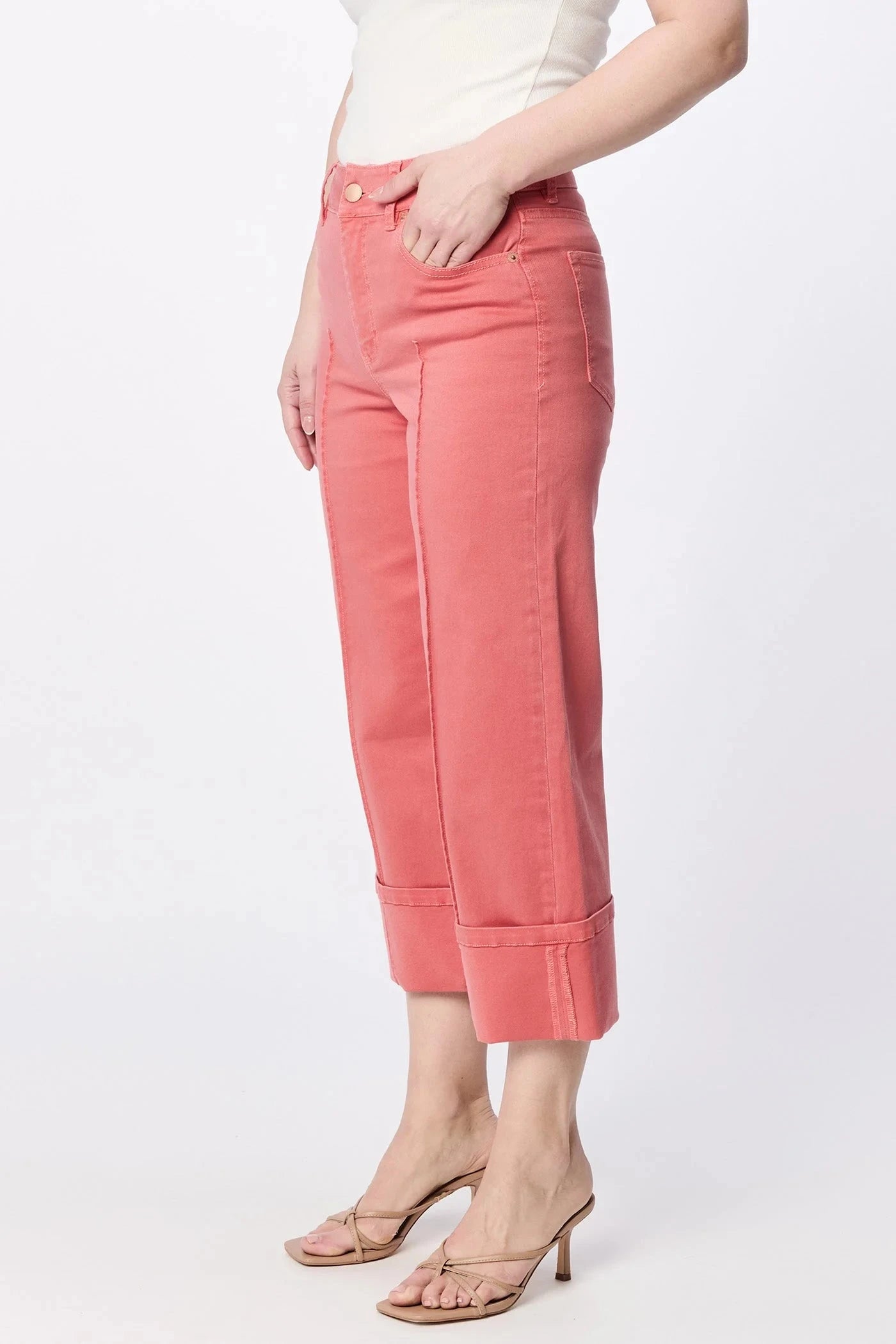 The epitome of fashion with the Holly straight leg jean in seasonal colors, featuring a high-rise fit and a clean, wide hem, wear it cuffed or long for a sophisticated silhouette.