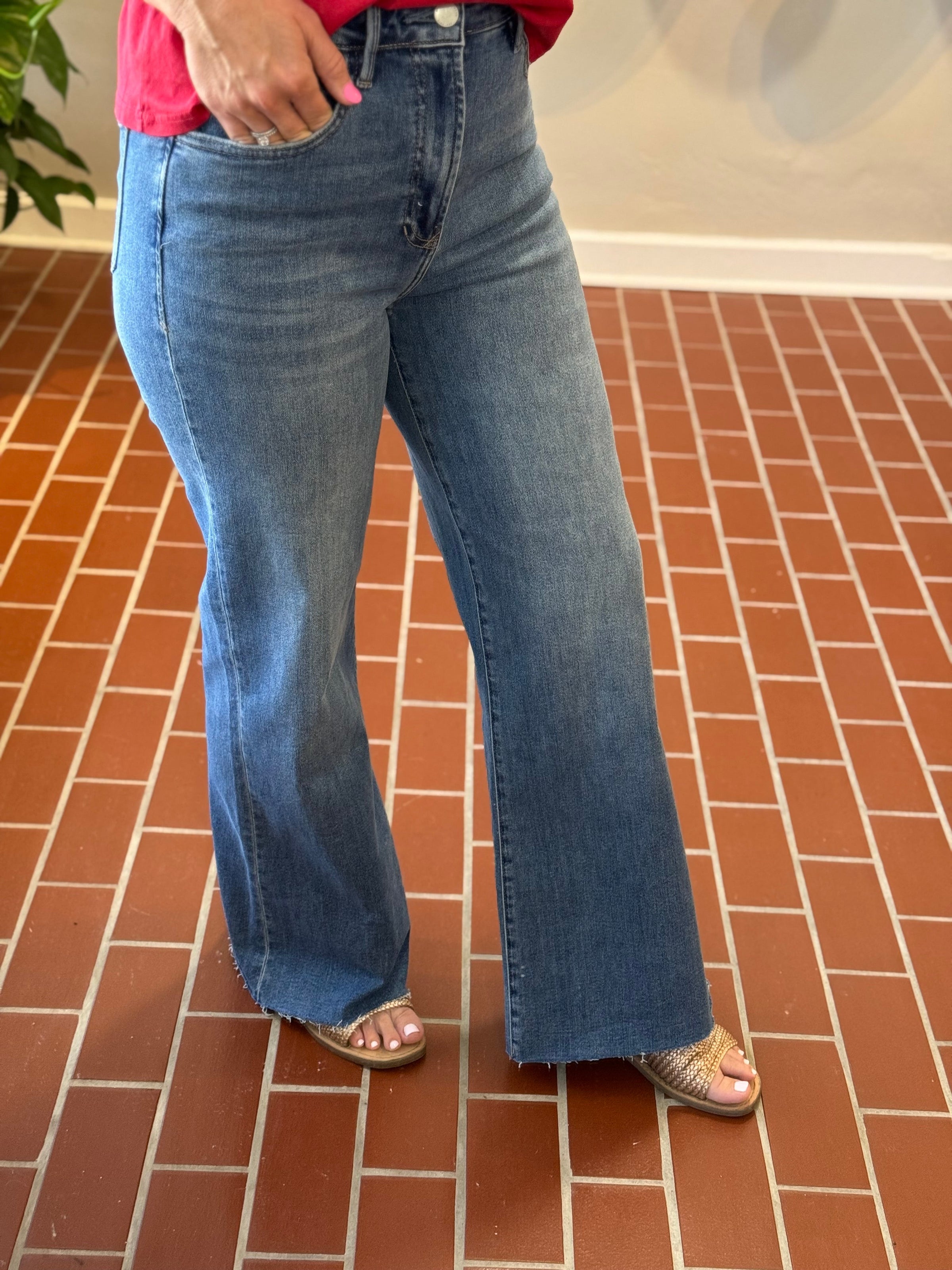 Unleash your style with our Fiona Pants, blending comfort and fashion. These high-rise pants feature a modern cut-off hem for a relaxed look. Made from a premium blend of cotton, recycled polyester, and spandex, they offer a smooth fit with the perfect amount of stretch. Sustainable and versatile, a customer favorite