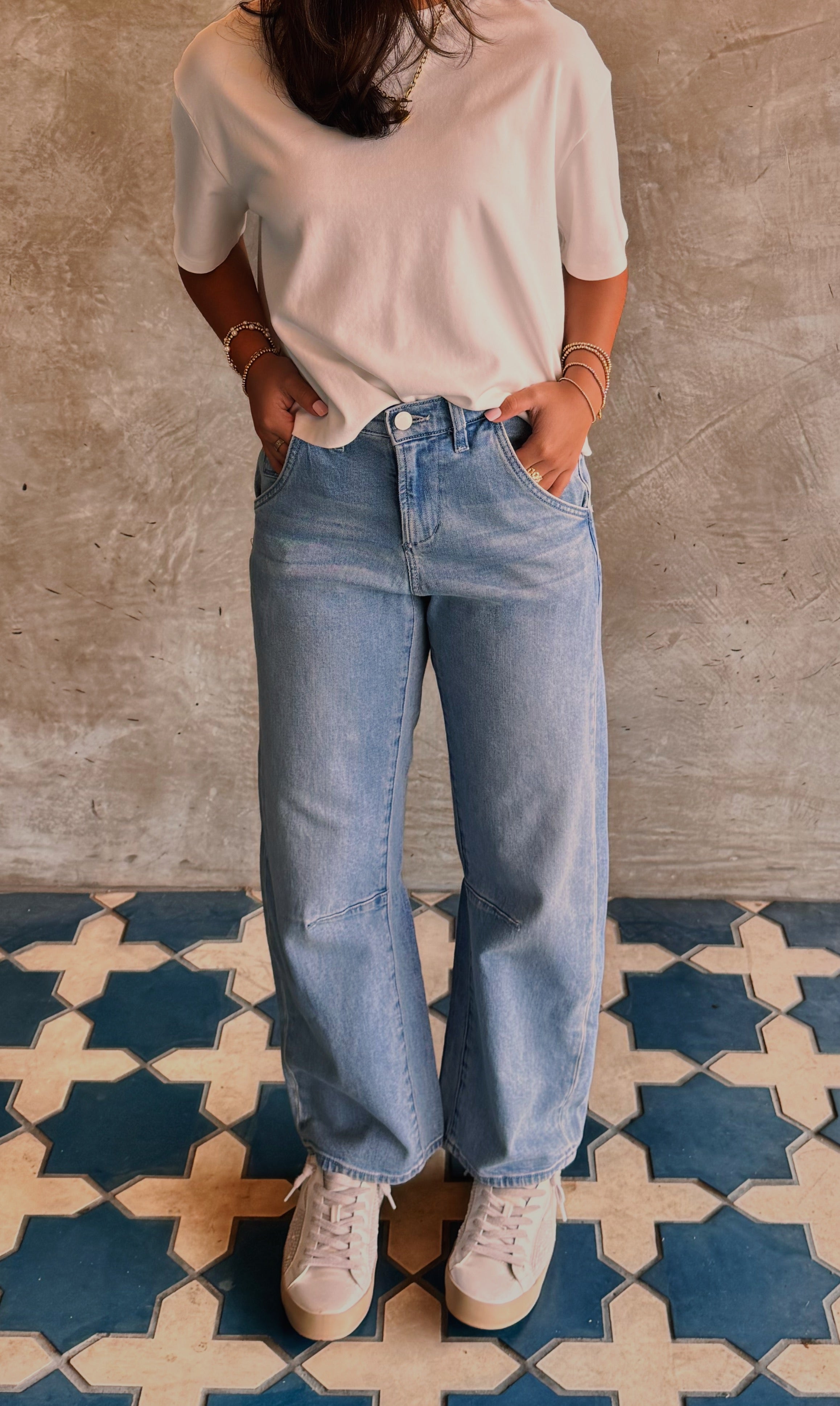 Get ready to turn heads in our Dear John Lasso Jeans! These playful high rise cropped jeans in a medium wash offer a loose fit with a defined waist, thanks to back and leg darts. Versatile for day or night, with front slant and utility back pockets. Grab your Lasso for a relaxed and stylish look