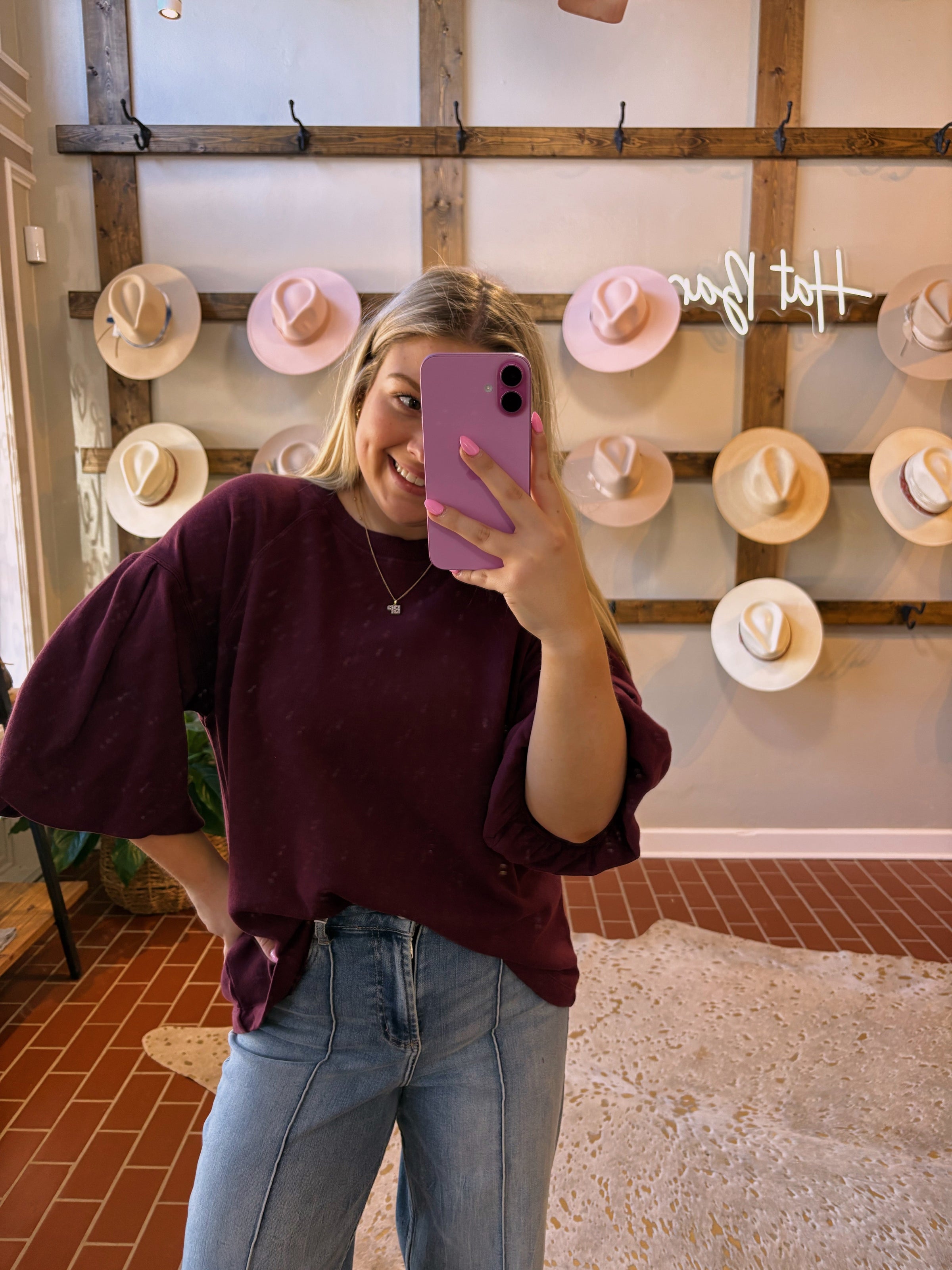 Matteo puff-sleeve crew neck sweater offers a gentle touch of elegance.