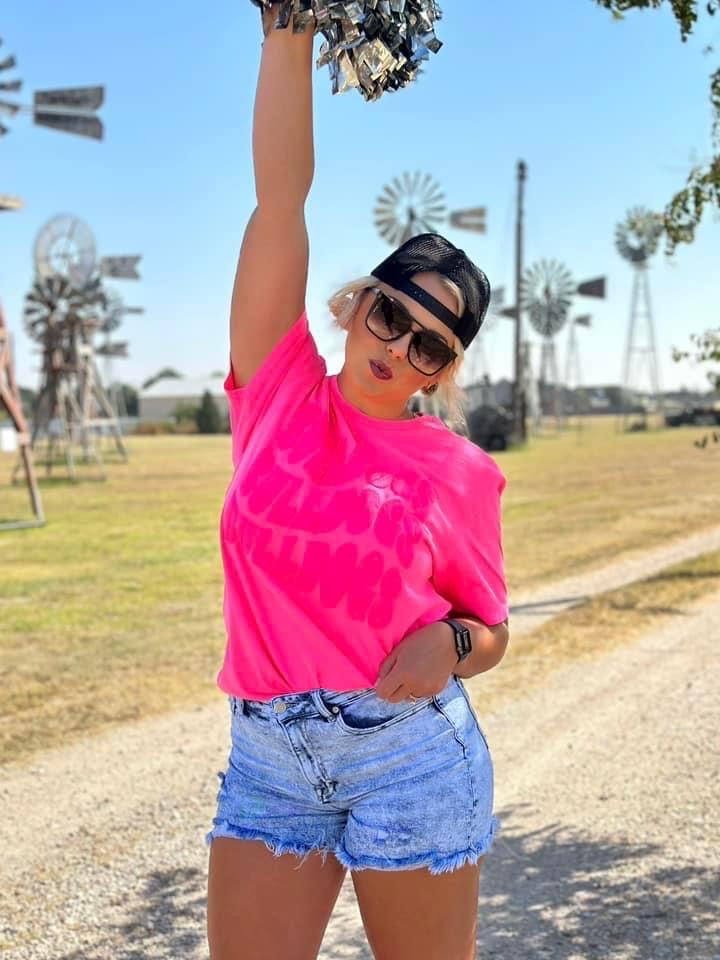 puff print design on a super soft texas true threads tee . true to size