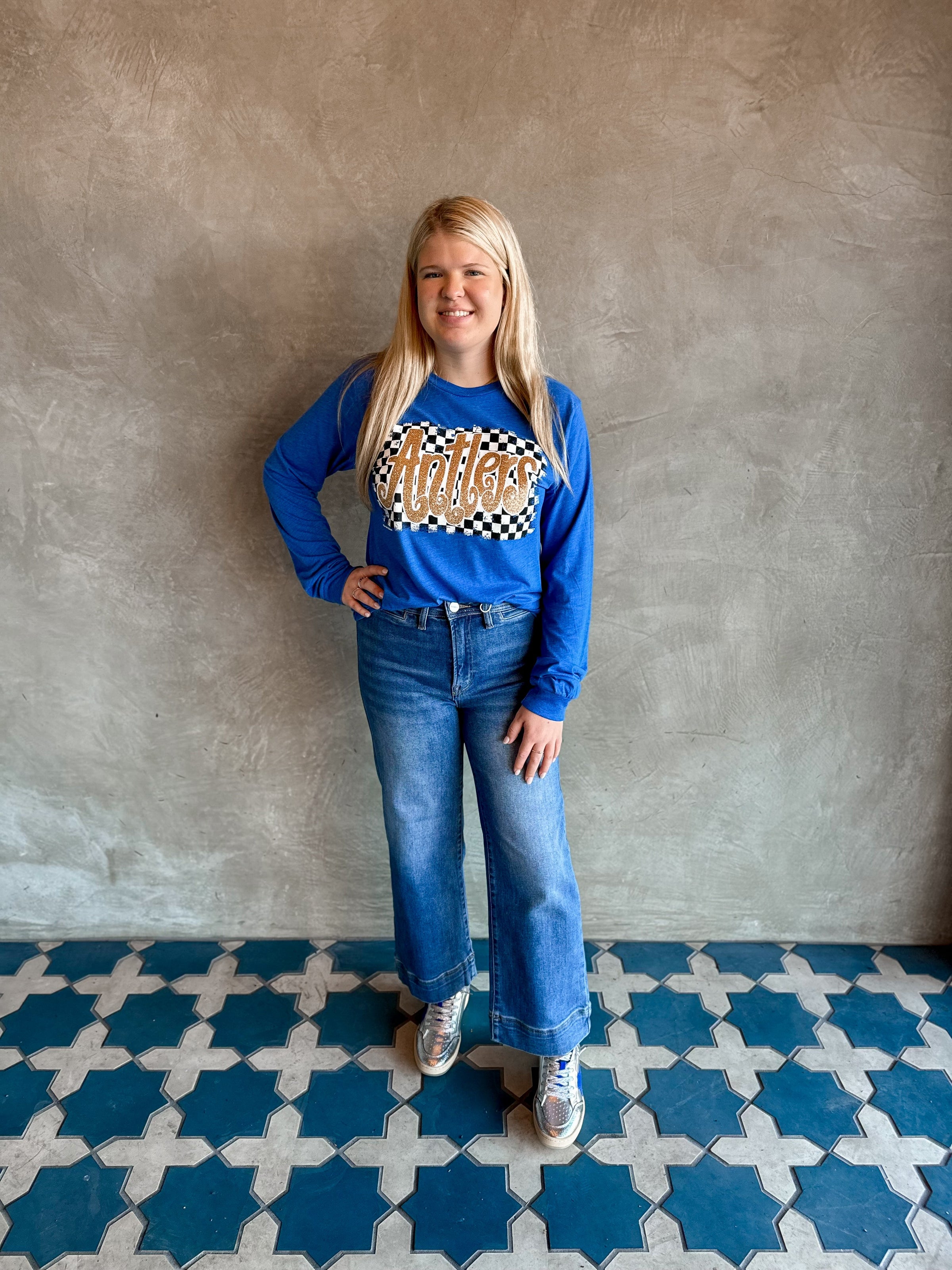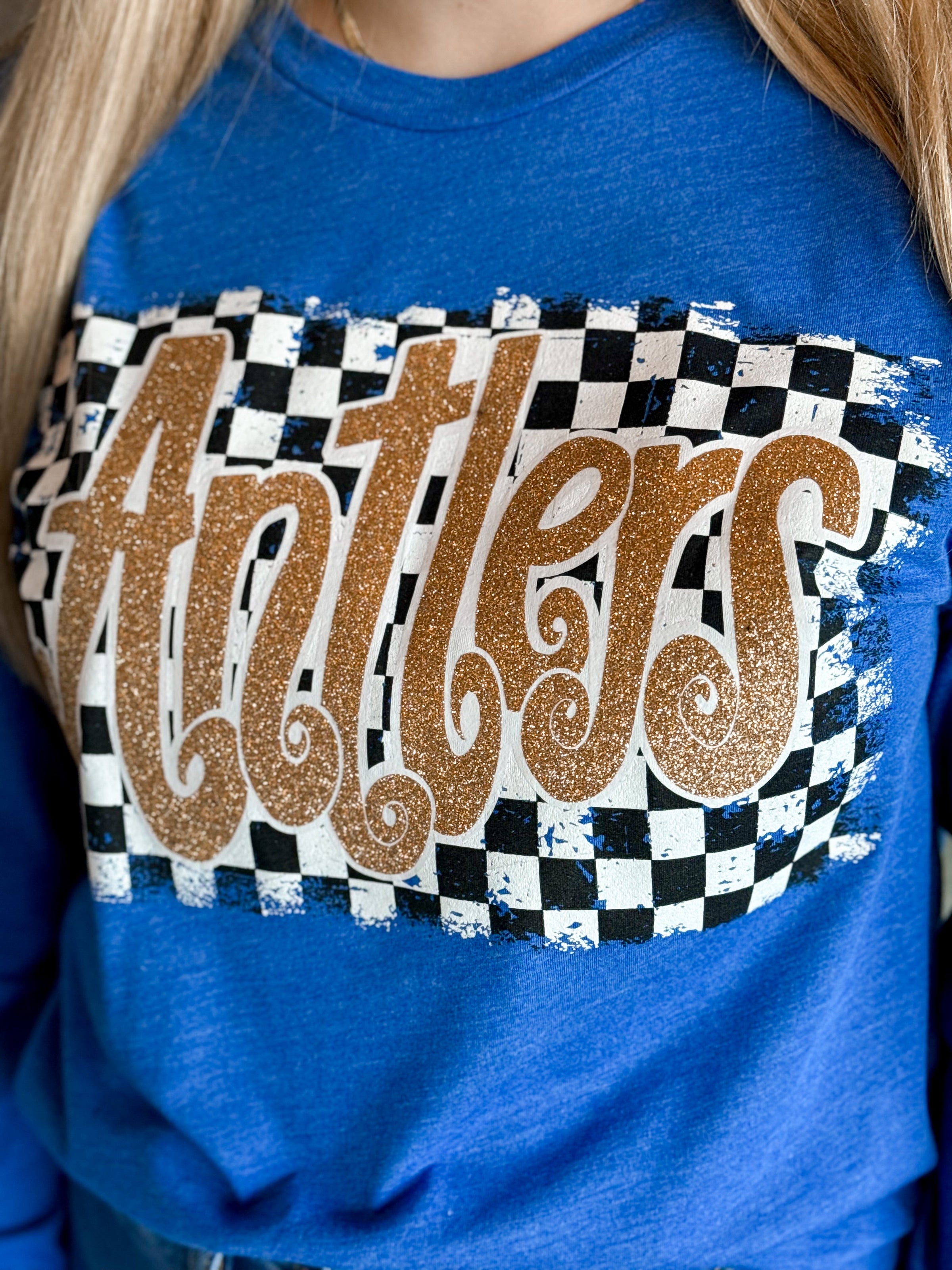 Our favorite tees are back and in the cutest char black color! These are our Texas True Threads tees which are such a great brand and the fabric is so soft and washes well! These tees have Ingram written in cursive with red glitter!
