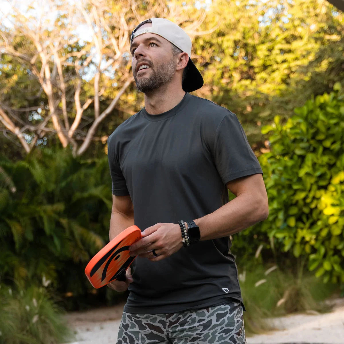 Our "Go To Tee," the ultimate companion for your active lifestyle. Crafted from a blend of 91% polyester and 9% spandex, this tee offers superior comfort and performance, ensuring you stay cool and dry throughout the day. With UPF 50 sun protection, you can confidently take on outdoor activities while shielding your skin from harmful UV rays. The lightweight performance fabric is quick-drying and moisture-wicking, keeping you fresh and comfortable even during the most intense workouts. Featuring anti-microbial properties, this tee helps combat odor-causing bacteria, keeping you feeling fresh and confident all day long. Whether you're hitting the gym, going for a run, or simply running errands, our "Go To Tee" is the perfect choice for all your active endeavors.