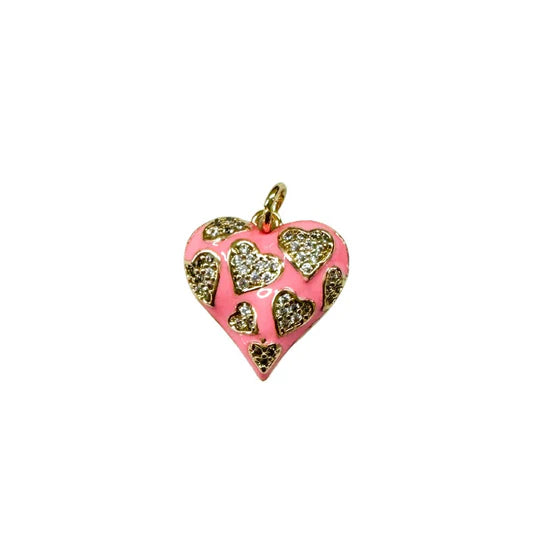Pink Heart Inlay CZ Charm