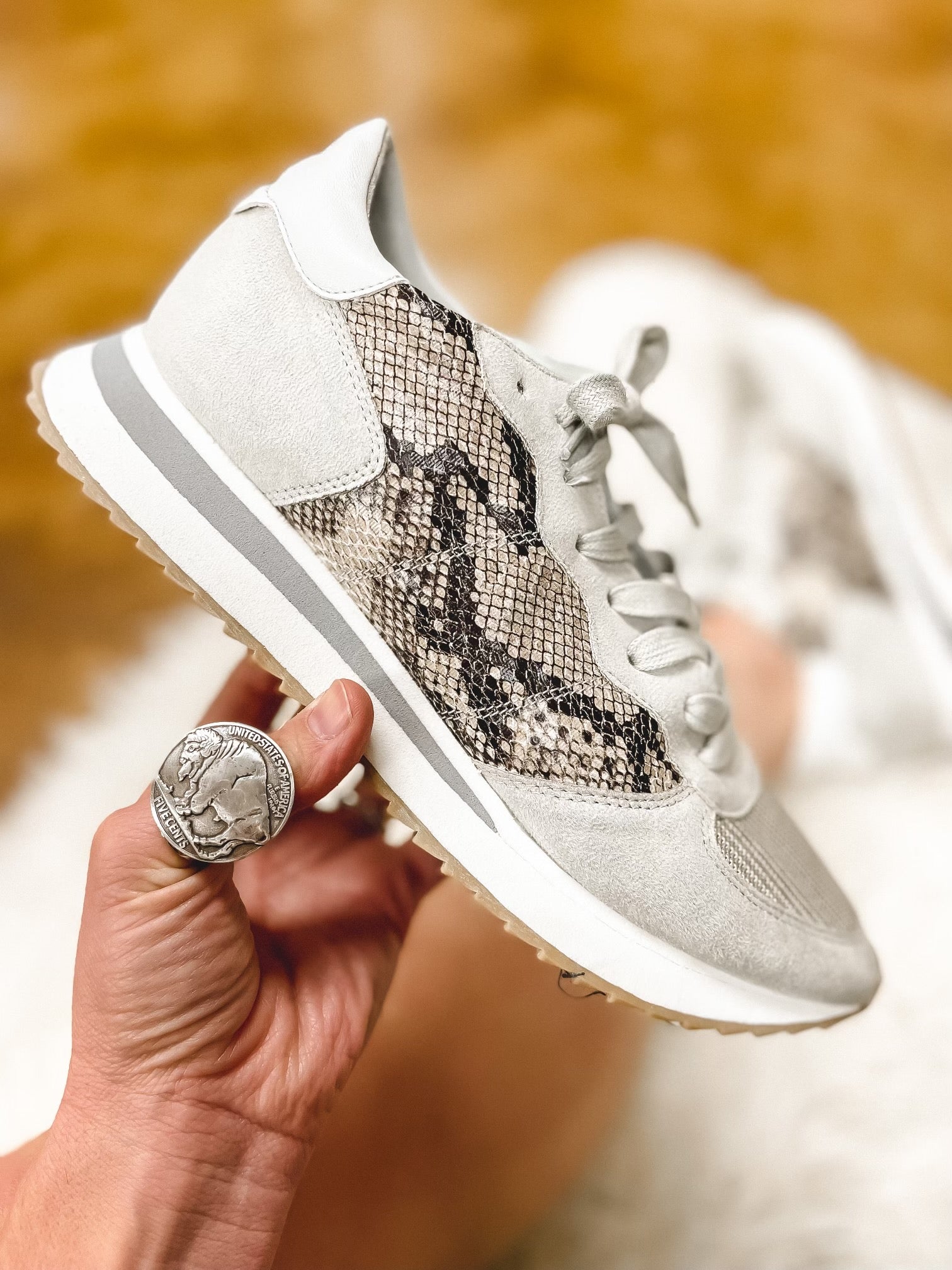 We have loved the Petra style sneaker from Shu Shop. They have been a customer favorite and I think the neutral snake print is by far the best yet