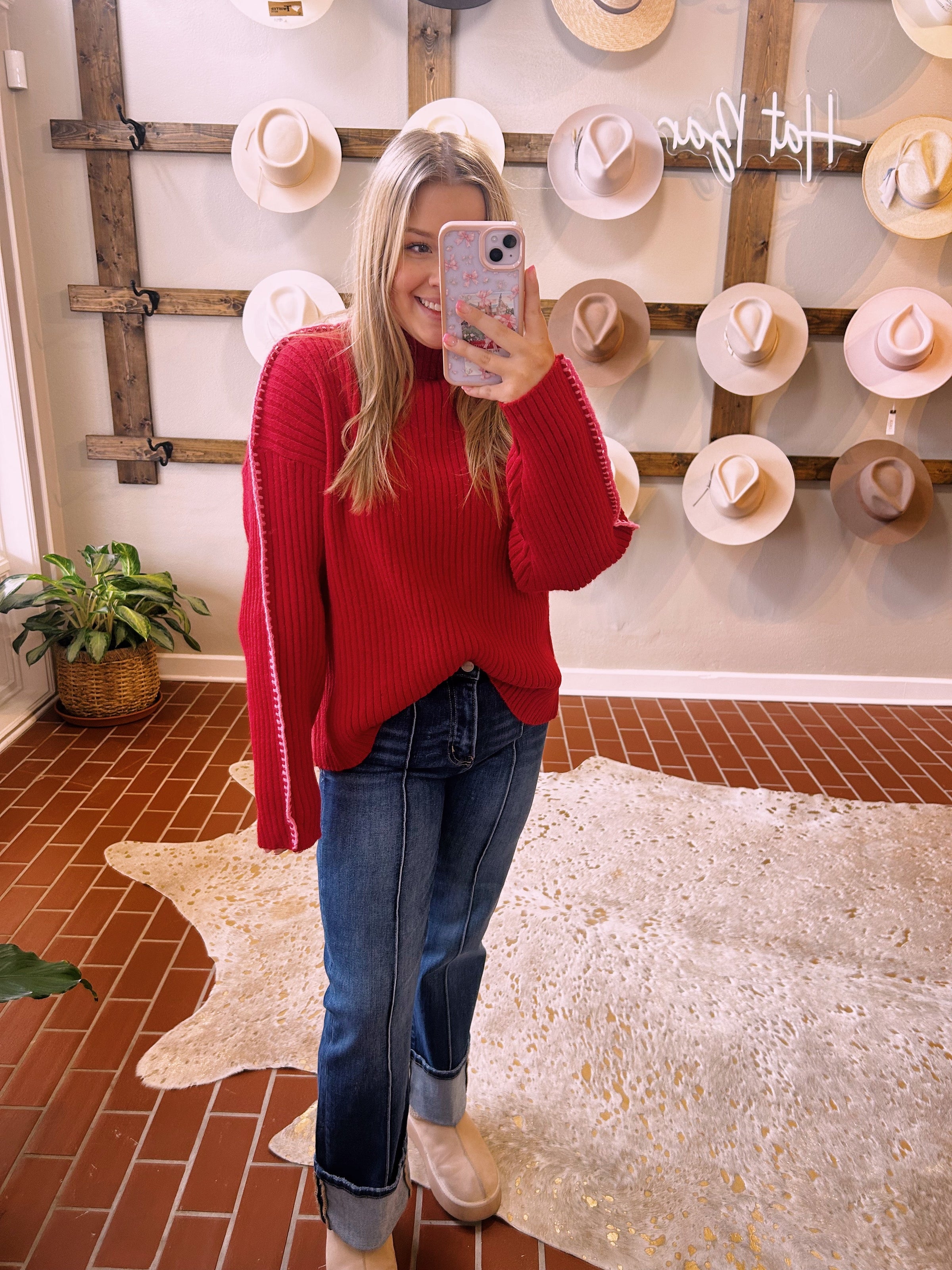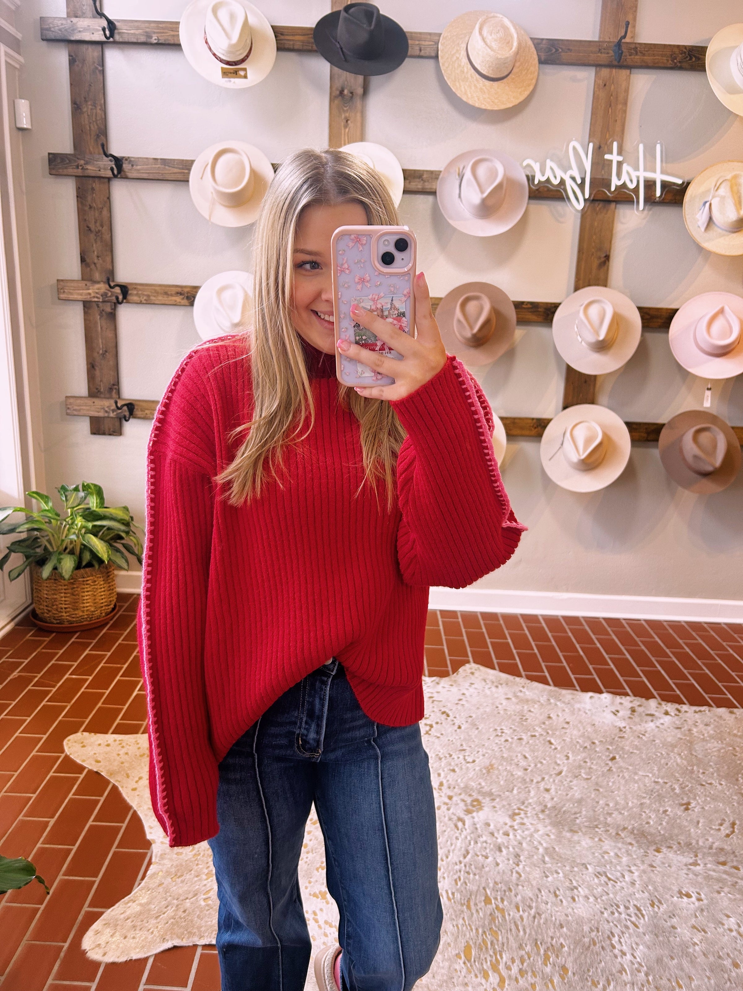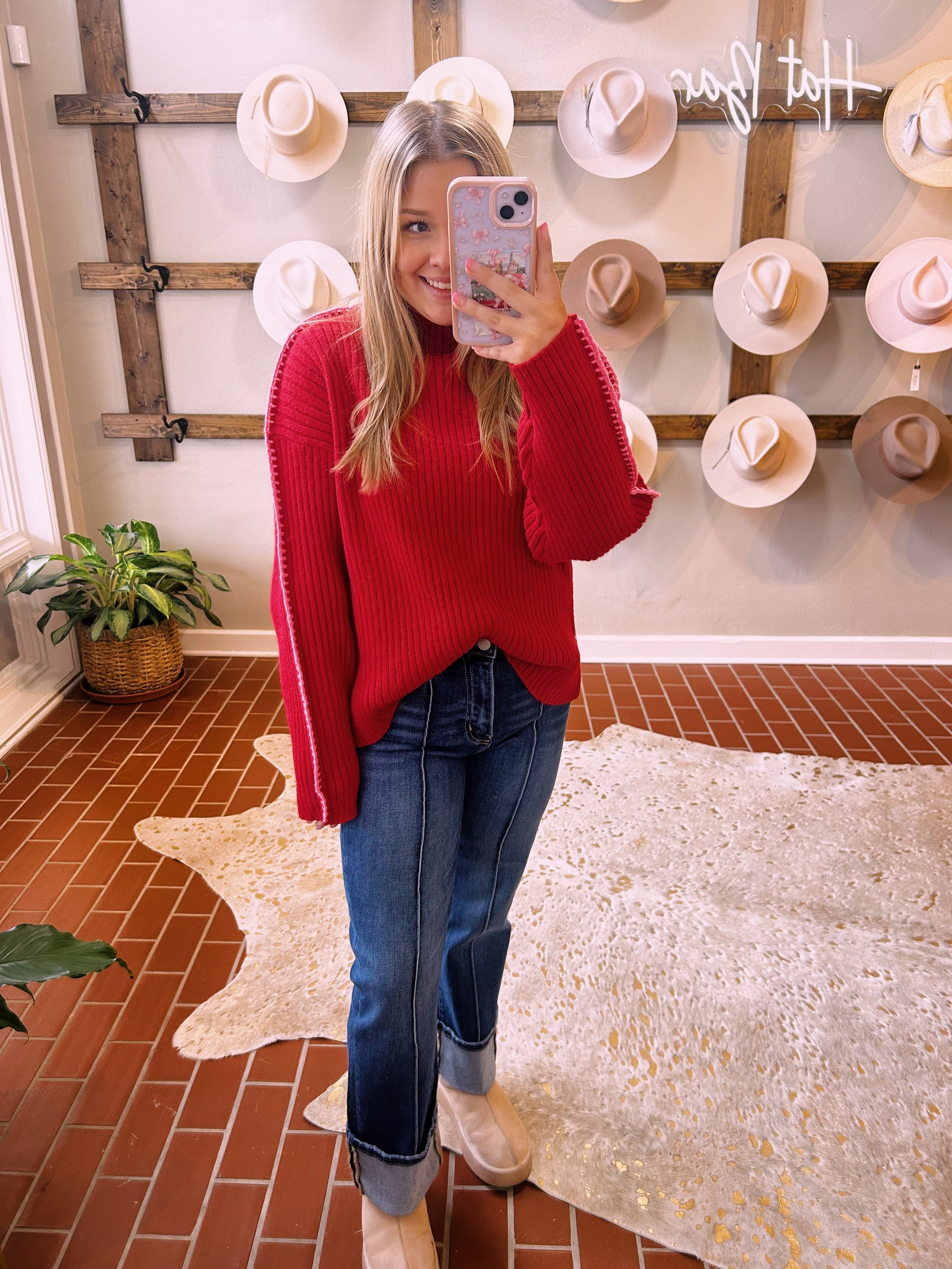Red is such a fun color and looks good on everyone! You can dress this sweater up or down and is perfect for any day or night out!
