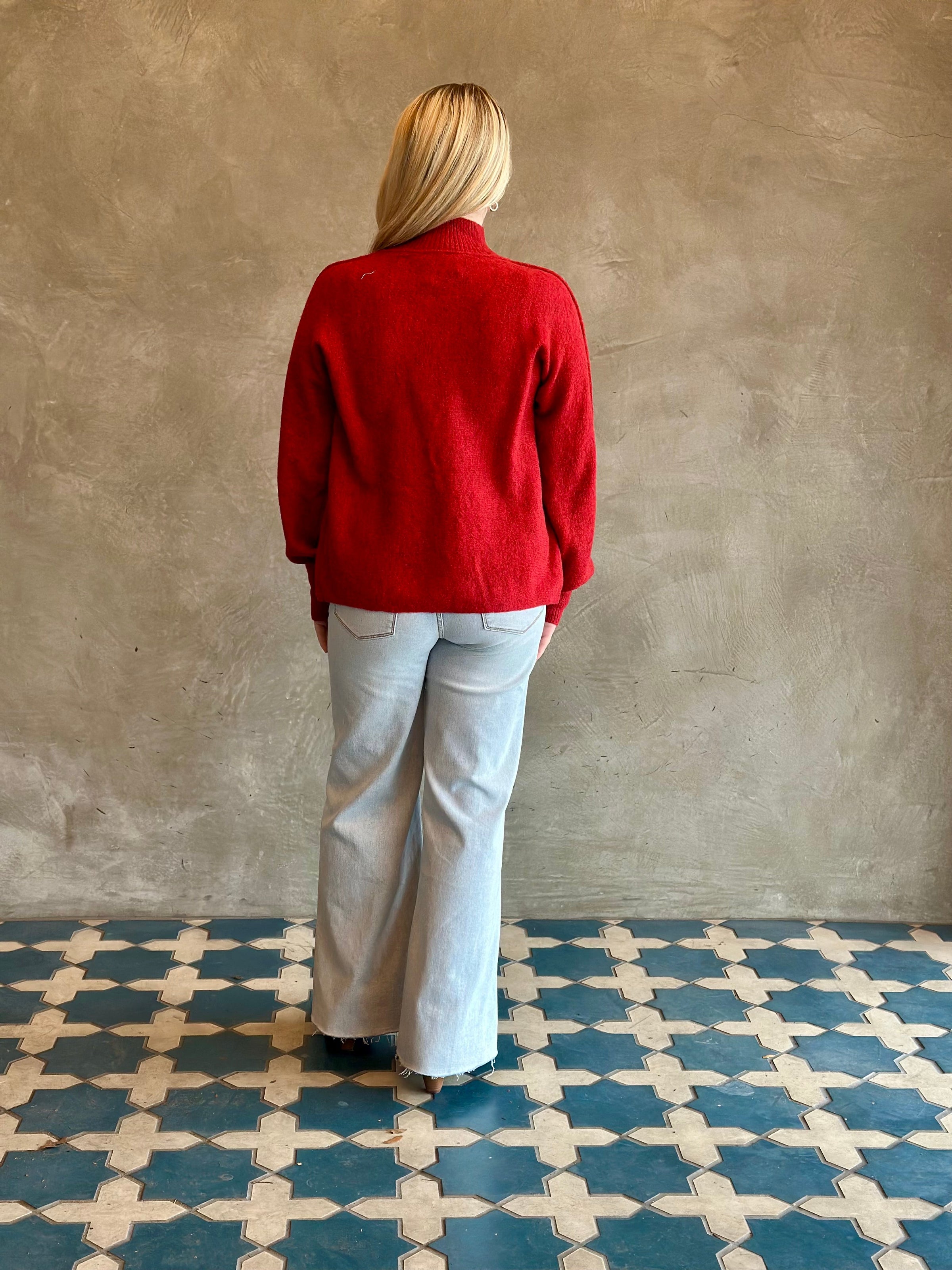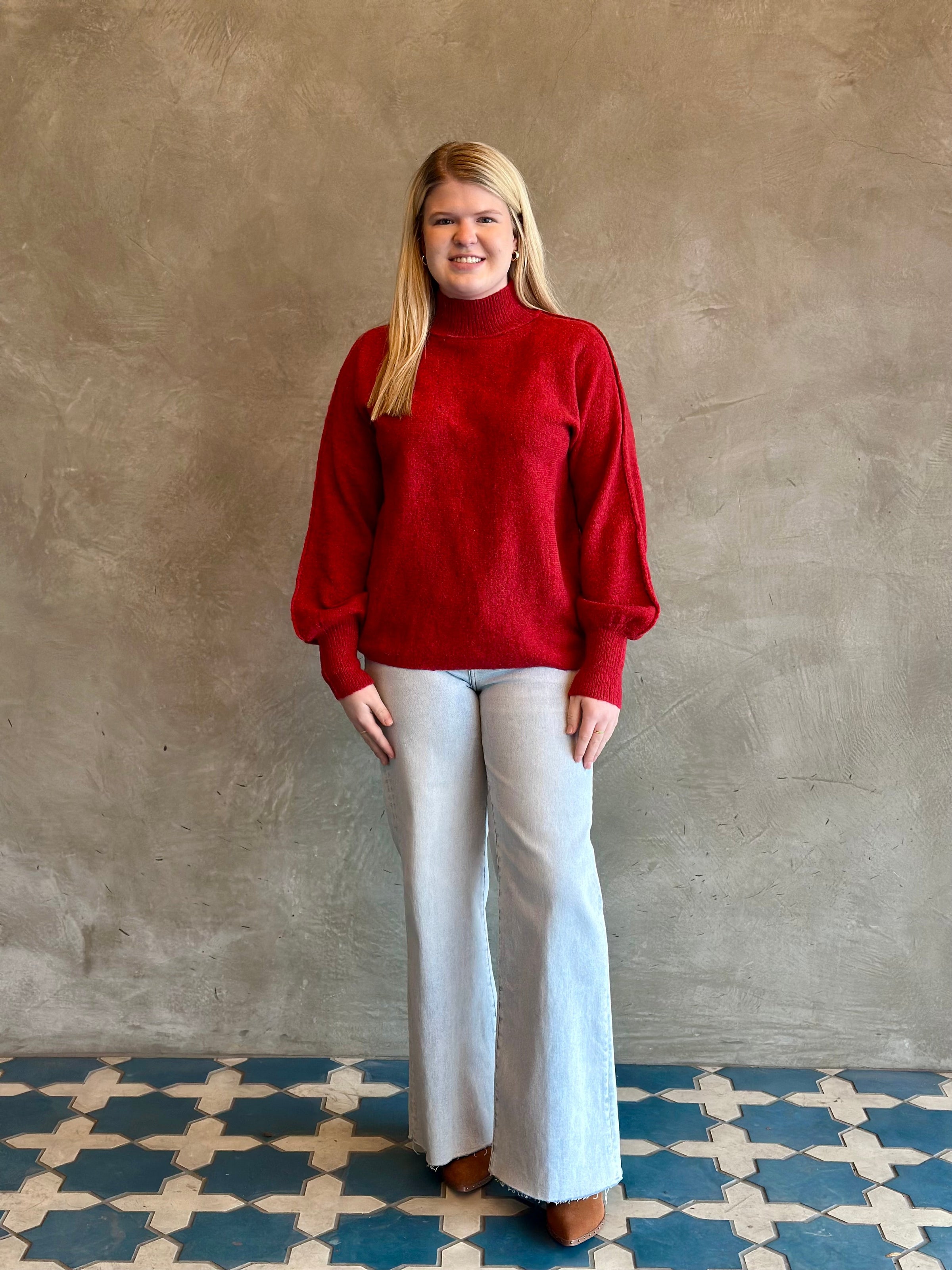 Such a cute and classic sweater top! This is a forever essential pullover sweater with a featured mock neckline, defined seaming on the balloon shaped sleeves. For sure a cute top to pair with denim. It is easy to throw on and add to your classic collection.