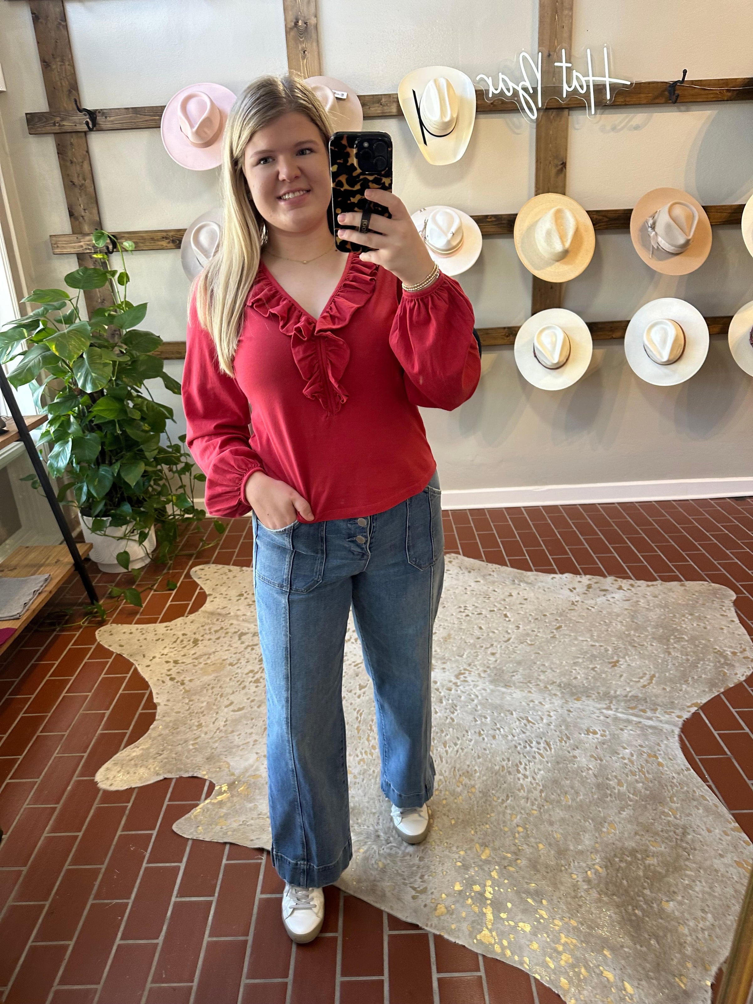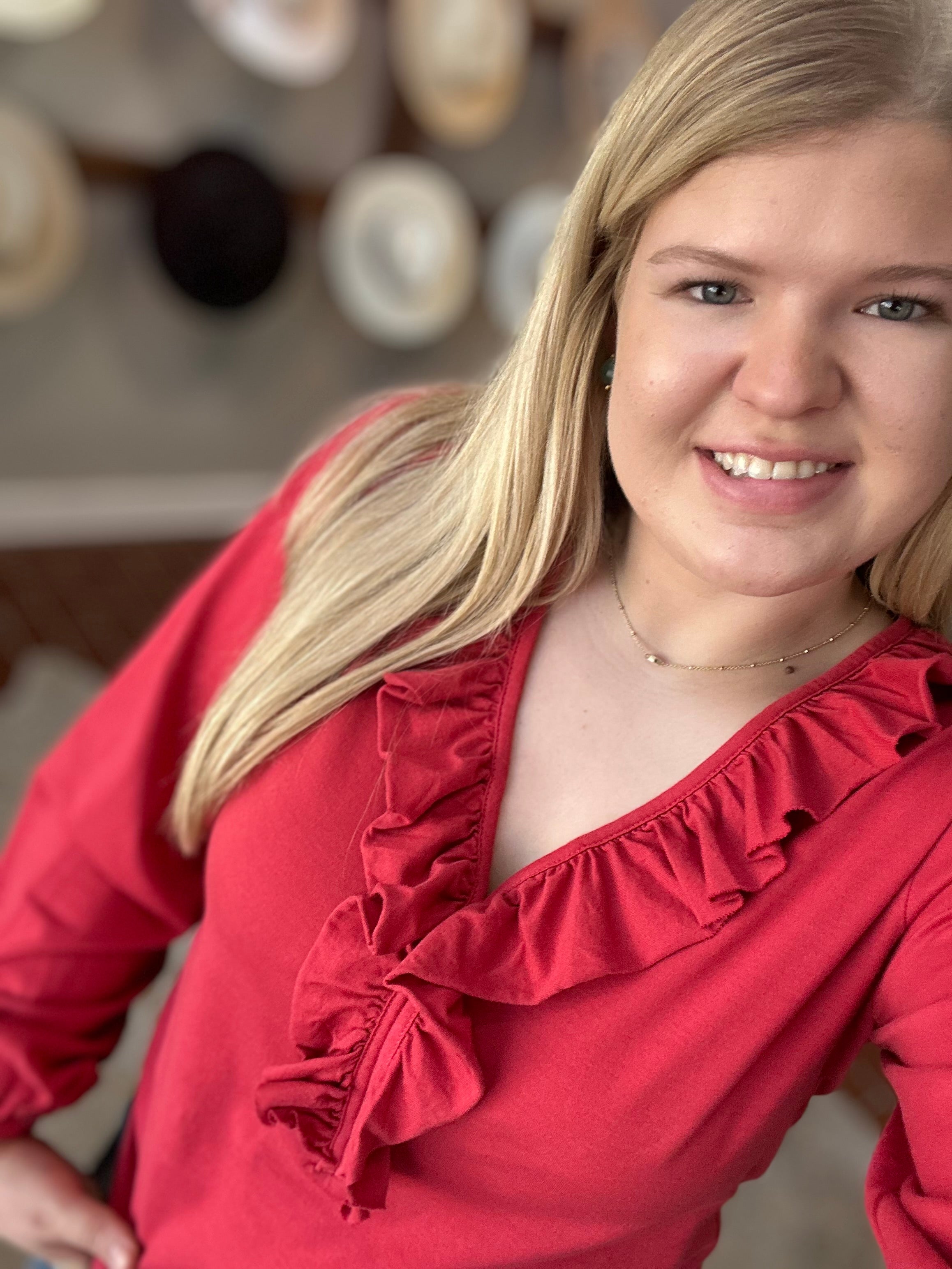 Raquelle v-neck long sleeve top designed with delicate ruffles for an added touch of elegance. Crafted from 100% breathable cotton, with classic fitting will both feel fresh and confident throughout the day. A perfect blend of fashion and versatile addition to any wardrobe.