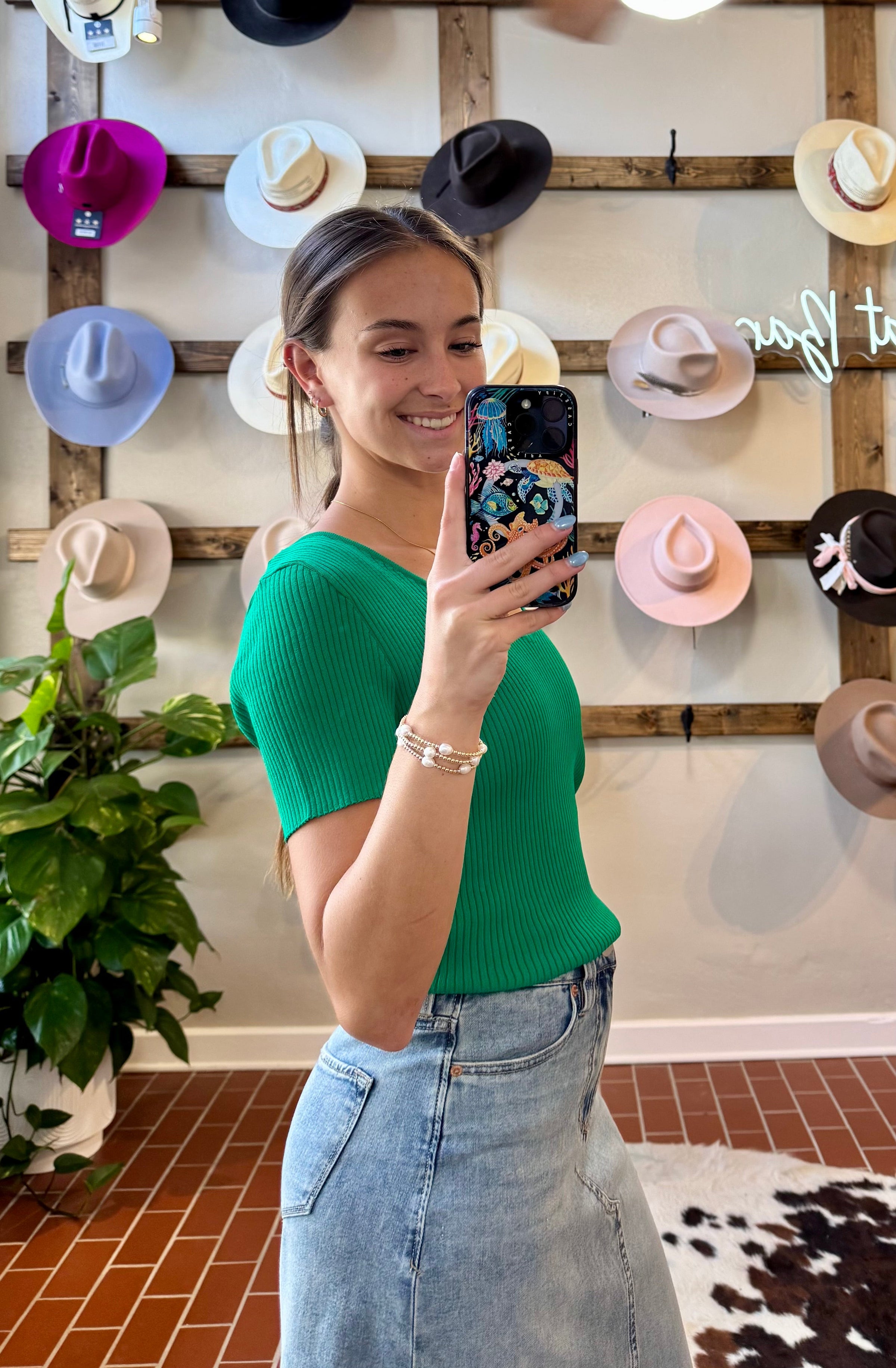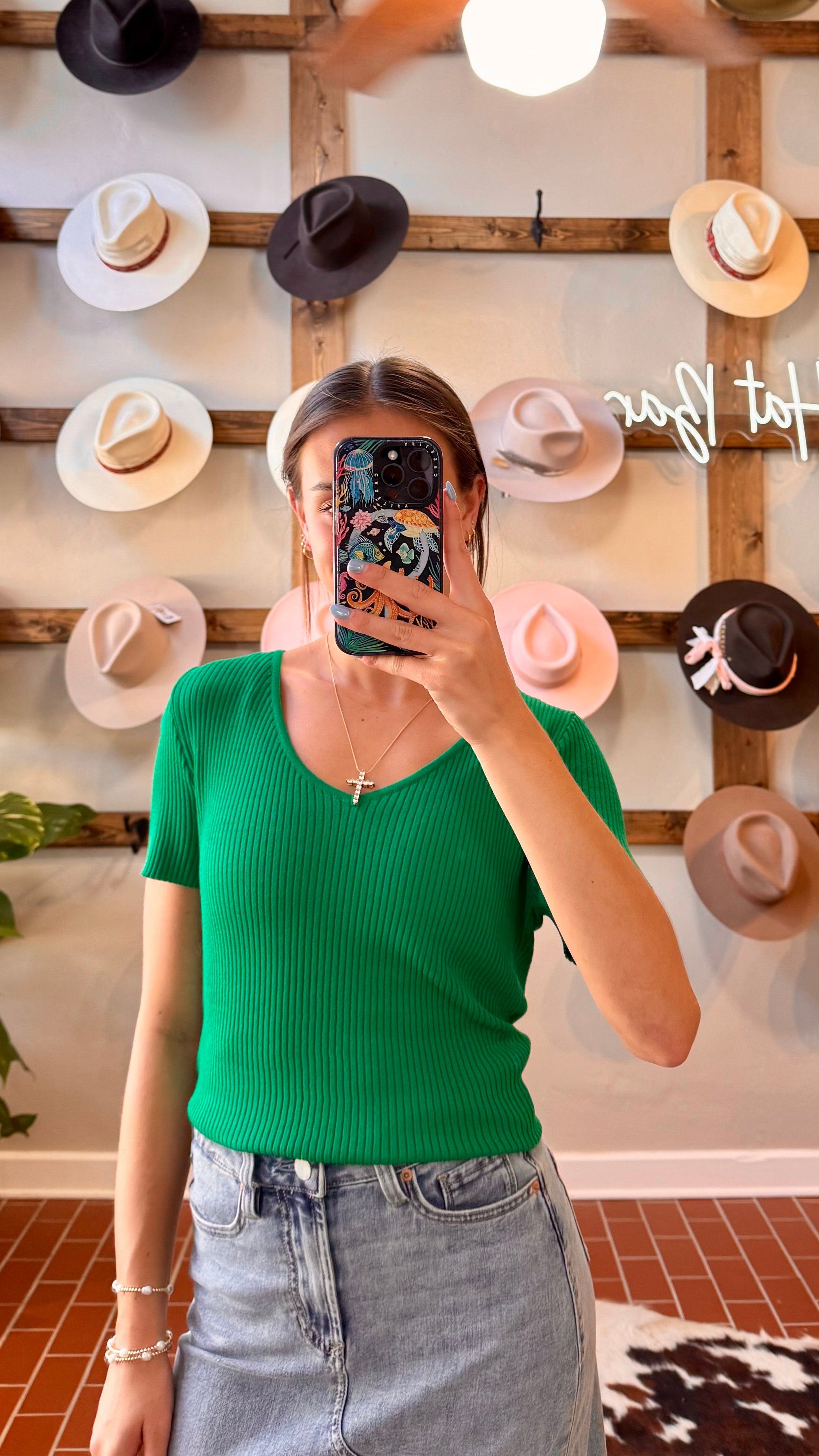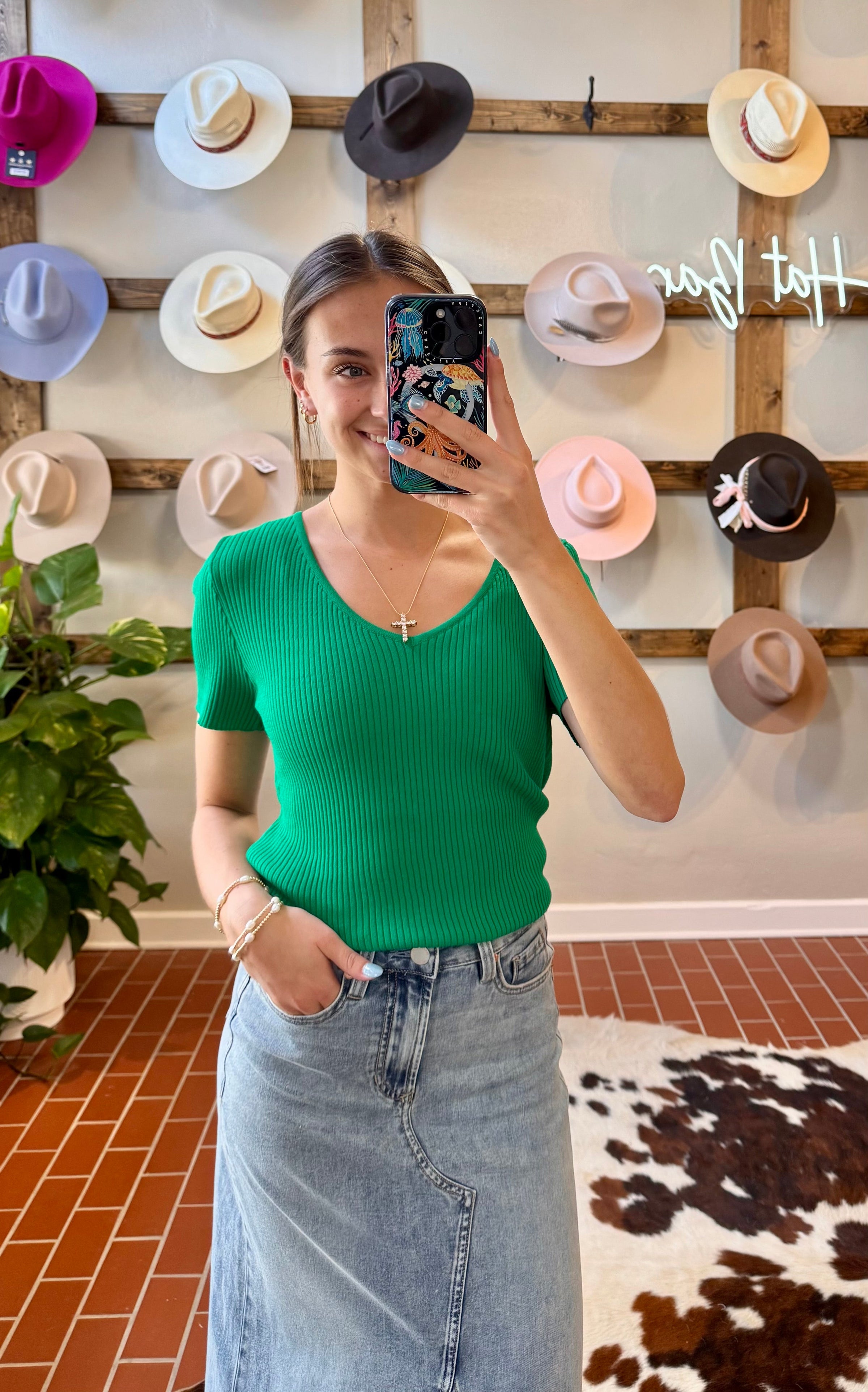 Get ready to fall in love with Another Love's Rhiannon Top. Made from a light weight ribbed sweater fabric, this top features a flattering v neckline, raw hemlines, and a figure flattering fit. Perfect for a dressed up game day look with white denim, or a casual yet chic vibe with your go-to denim.